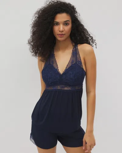 Women's Cool Nights Soft Support Lace Cami Pajama Top In Navy Blue Size Medium | Mother's Day P In Nightfall Navy