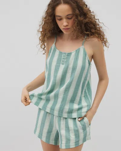 Women's Cotton Gauze Cami Pajama Top In Green Size Medium | Mother's Day Pajamas In Dark Sea Crossdye