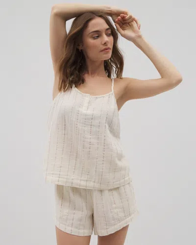 Women's Cotton Gauze Cami Pajama Top In Ivory Size 2xl | Mother's Day Pajamas In Champagne Stripe