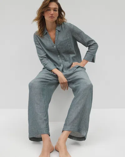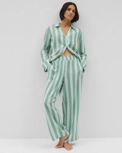 Women's Cotton Gauze Pajama Pants In Blue Size Xl | Mother's Day Pajamas In Teal Stripe