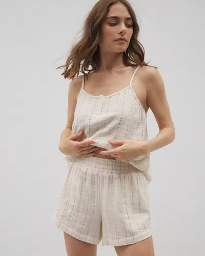 Women's Cotton Gauze Pajama Shorts In Ivory Size 2xl | Mother's Day Pajamas In Champagne Stripe