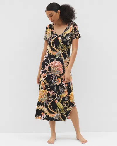 Women's Cool Nights Short Sleeve Long Nightgown In Black Size Xs |