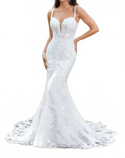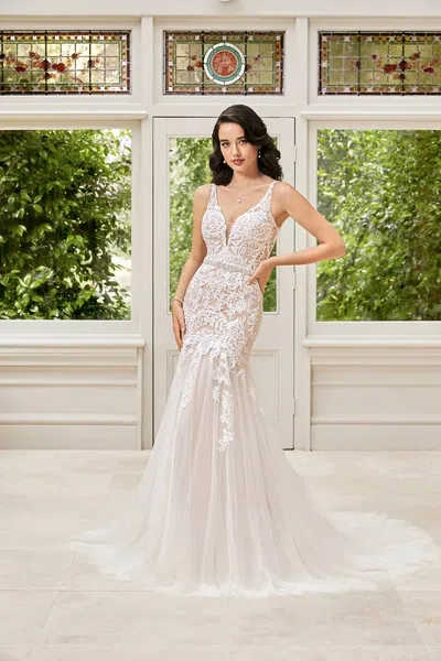 Lace And Tulle Wedding Gown In Ivory/nude In White