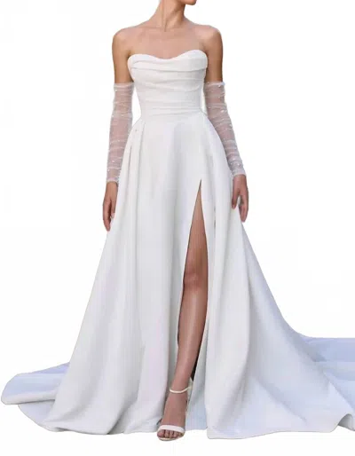 Satin Wedding Dress With Gauntlet Sleeve In Ivory In White