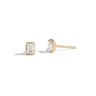 Emerald-cut Stud Earrings In Yellow Gold,white Diamonds