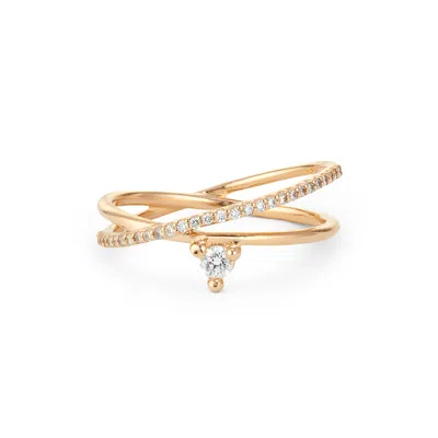 Pave Crossroads Ring In Yellow Gold,white Diamonds