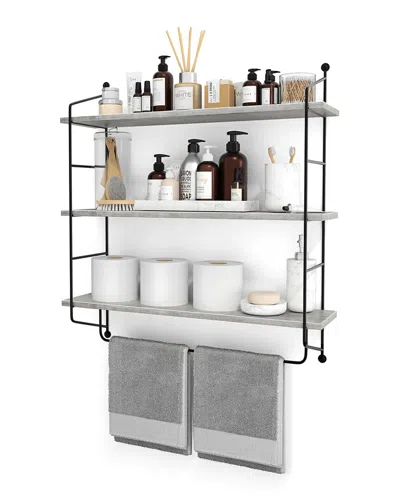 3-tier Grey Wooden Floating Shelves With Metal Brackets