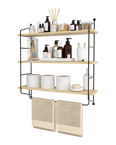 3-tier Maple Wooden Floating Shelves With Metal Brackets