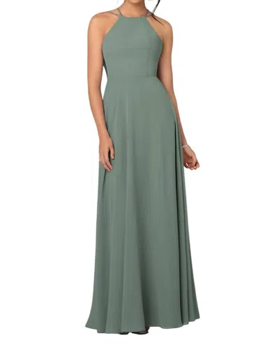 Simple Bridesmaid Dress With High Halter Neckline In Evergreen In Green