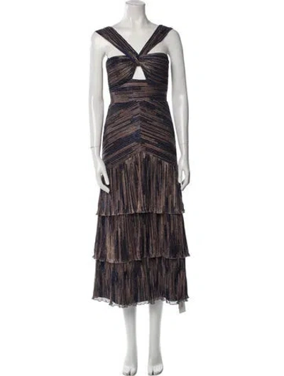 Pre-owned Bateau Neckline Midi Length Dress In Black