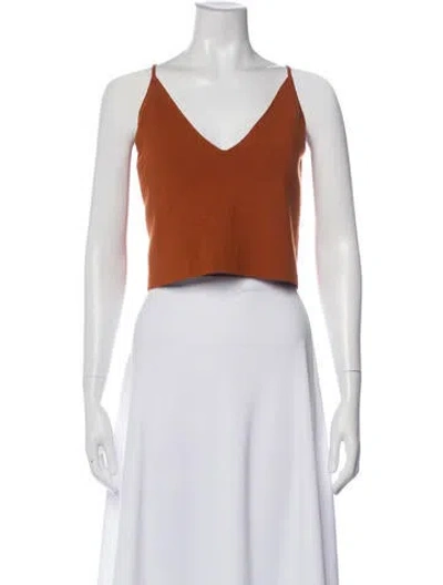 Pre-owned V-neck Sleeveless Crop Top In Brown
