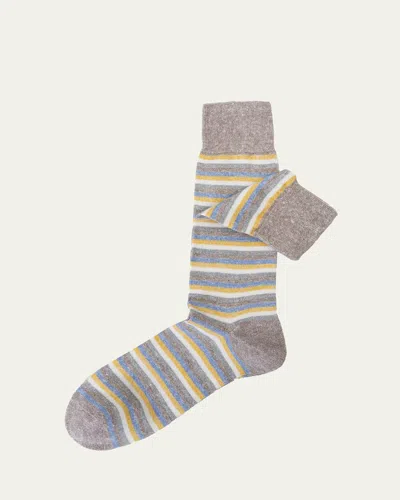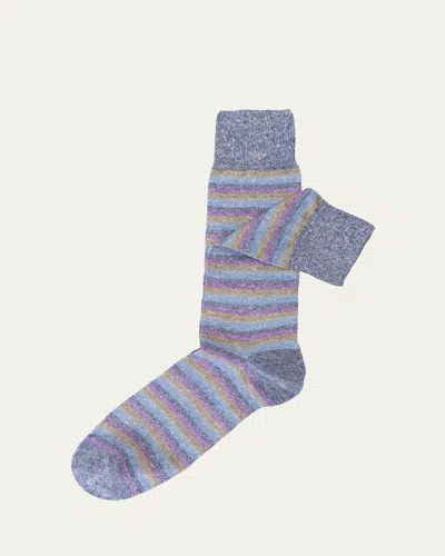Men's Linen And Cotton Multi-stripe Crew Socks In Blue