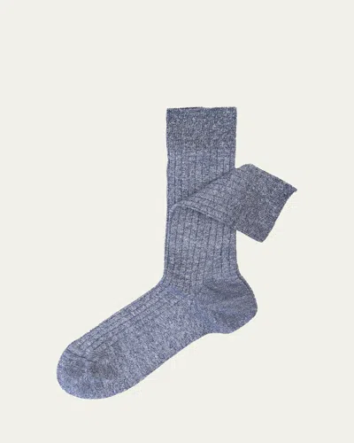 Men's Linen And Cotton Rib Crew Socks In Jean
