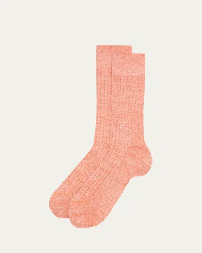 Men's Linen And Cotton Rib Crew Socks In Light Pink