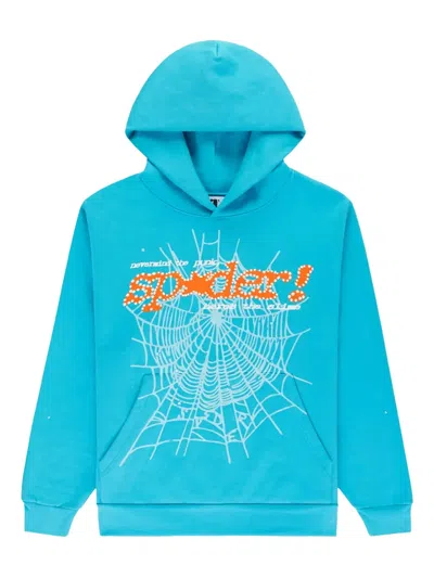 Spider-web Print Hoodie In Blue