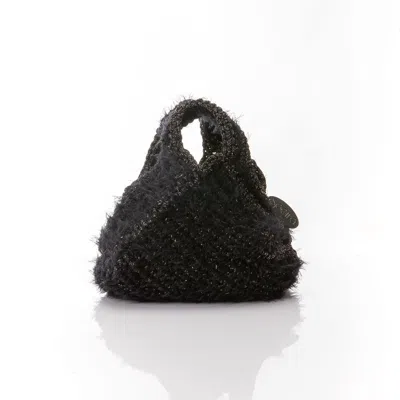 Women's Mini Shoulder Bubble With Knitted Handle Black Glitter