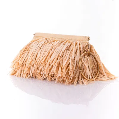 Women's Neutrals Clutch With Raffia Fringes Natural