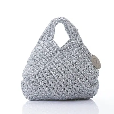 Women's Mini Shoulder Bubble With Knitted Handle Silver Glitter