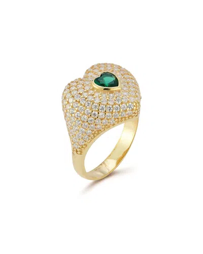 14k Over Silver Cz Heart Signet Ring In Gold