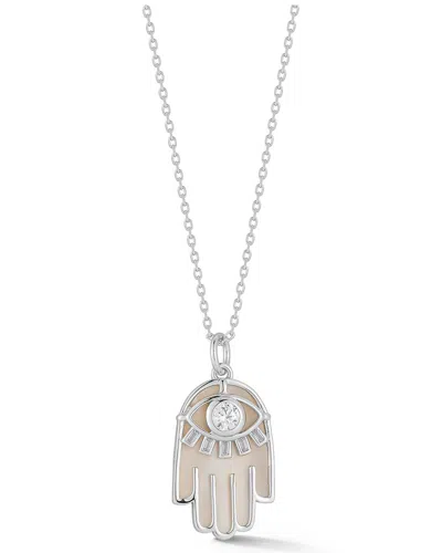 14k Over Silver Mother Of Pearl Cz Necklace In Brown