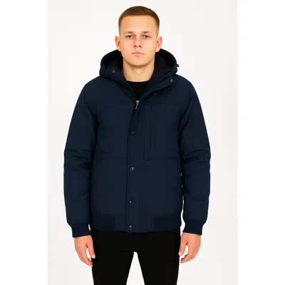 Men's Heavyweight Faux Shearling Lined Hooded Bomber Jacket In Blue