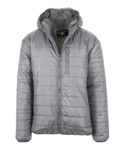 Men's Sherpa Lined Hooded Puffer Jacket In Gray