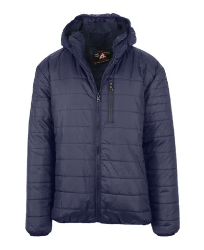 Men's Sherpa Lined Hooded Puffer Jacket In Blue