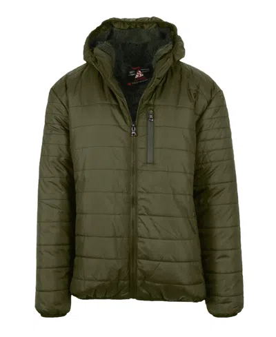Men's Sherpa Lined Hooded Puffer Jacket In Green