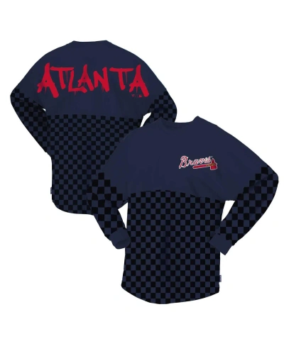 Women's Navy Atlanta Braves Checker Print Long Sleeve T-shirt