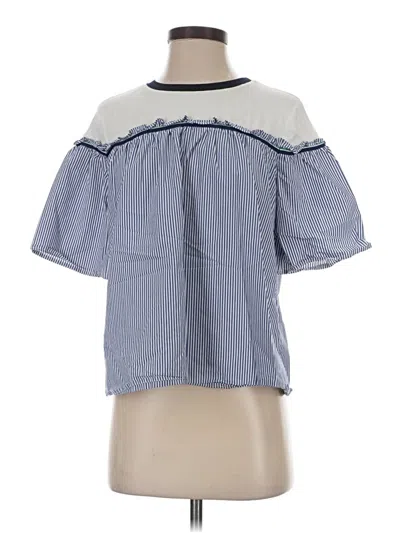 Pre-owned Short Sleeve Top Blue Mock Neckline Tops