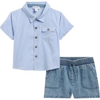 Babies' Boardwalk Short Sleeve Button-up Shirt & Shorts Set In Blue