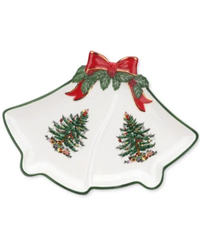 Christmas Tree Ribbon Earthenware Divided Bell Dish In Multi