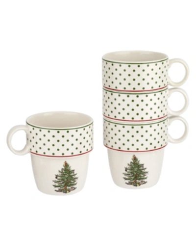 Set Of 4 Christmas Tree Stackable Mugs In White Multi