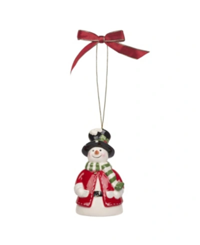 Christmas Tree Snowman Bell Ornament In White Multi