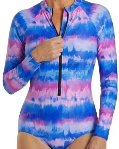 Scoop Back Unitard Swimsuit In Malibus Sunrise In Blue