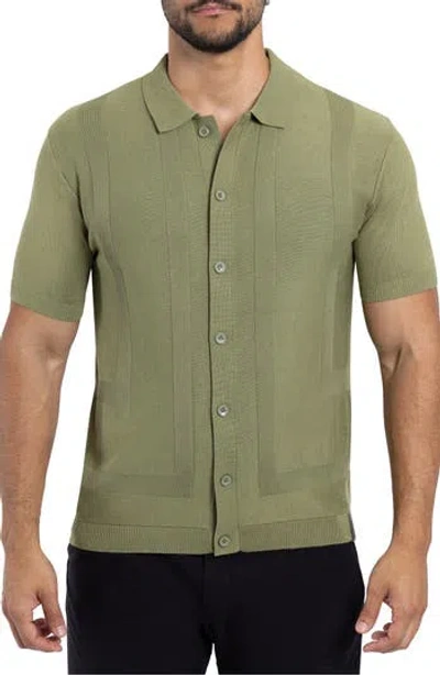 Classic Fit Textured Knit Camp Shirt In Dusty Olive