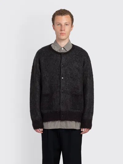 Kid Mohair Mix Jacquard Knit Cardigan In Black