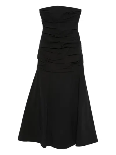 Gathered Strapless Maxi Dress In Black