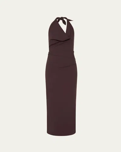 Handkerchief Silk Halter Dress In Brown