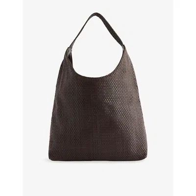 Womens Coffee Lattice Large Weave Leather Tote Bag In Brown