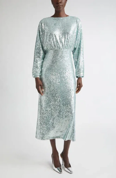 St. John Long Sleeve Sequin Stretch Knit Midi Dress In Blue