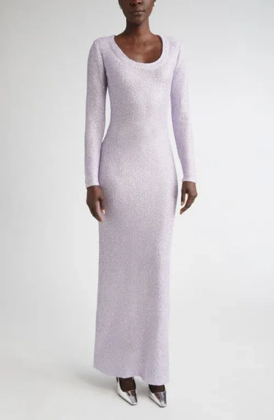 St. John Nicoline Long Sleeve Sequin Stretch Knit Gown In Purple