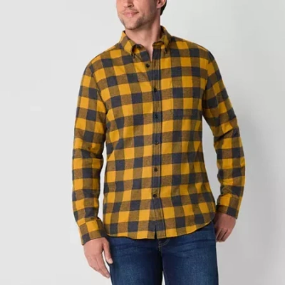 Mens Long Sleeve Classic Fit Flannel Shirt In Yellow