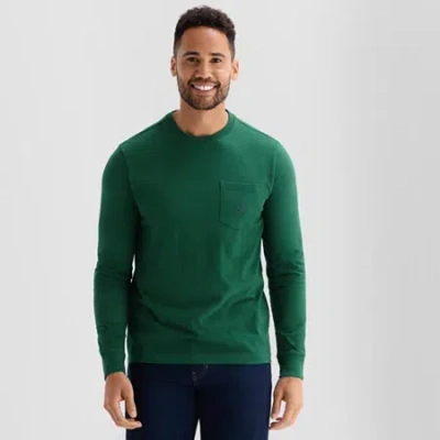 Sueded Jersey Mens Crew Neck Long Sleeve T-shirt In Green