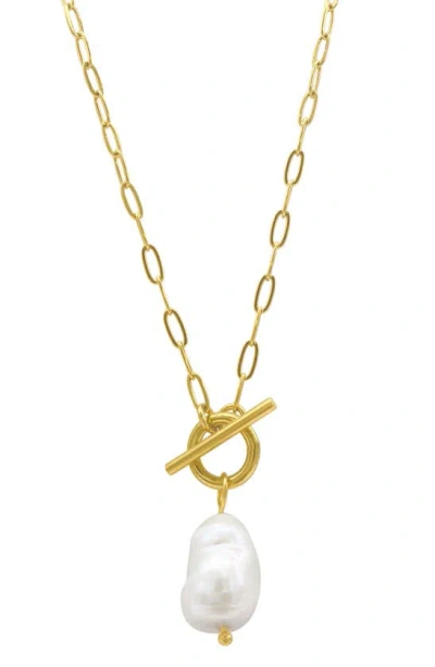 Freshwater Pearl & Curb Chain Necklace In White/gold