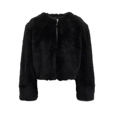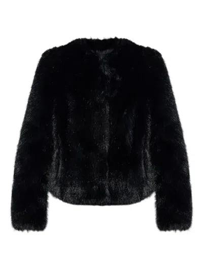 Single-breasted Teddy Coat With Flush Pockets In Black