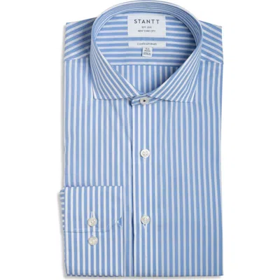 Contemporary Fit Bengal Stripe Wrinkle Resistant Cotton Dress Shirt In Blue