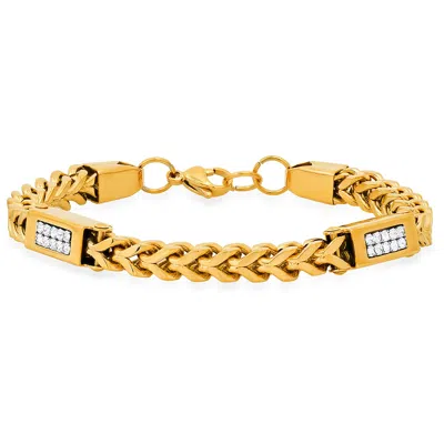Men's Stainless Steel 18k Gold Plated 8mm Wheat Chain Bracelet With Cz Links 8.5 Inch