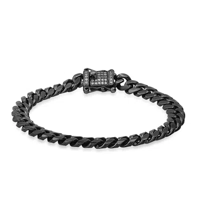 Men's Stainless Steel Black Ip Plated 8mm Miami Cuban Bracelet With Cz Box Clasp