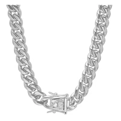 Silver Men's Stainless Steel 12mm Miami Cuban Necklace Chain With Box Clasp 30 Inch